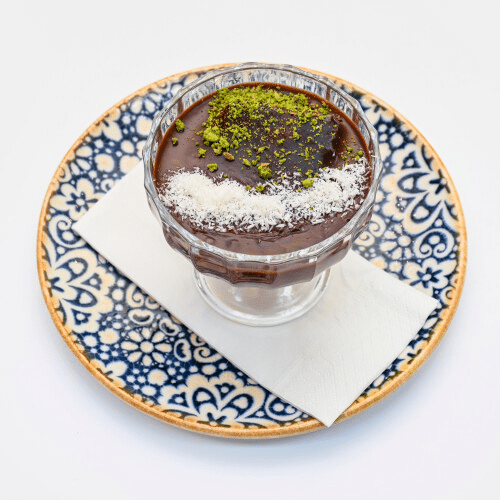 türkischer Schokopudding auf Schokokuchen